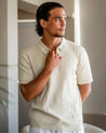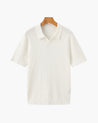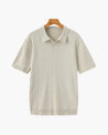 A knitted polo designed for understated sophistication. The vertical ribbing adds depth, while the relaxed fit ensures all-day ease. Perfect for layering or wearing solo, this versatile staple balances comfort with timeless appeal.